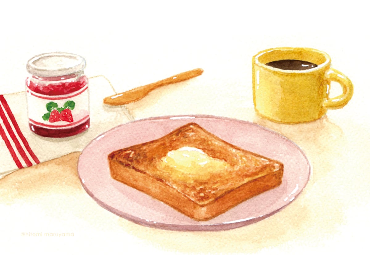 こんがり焼けたトーストにバターとジャム、